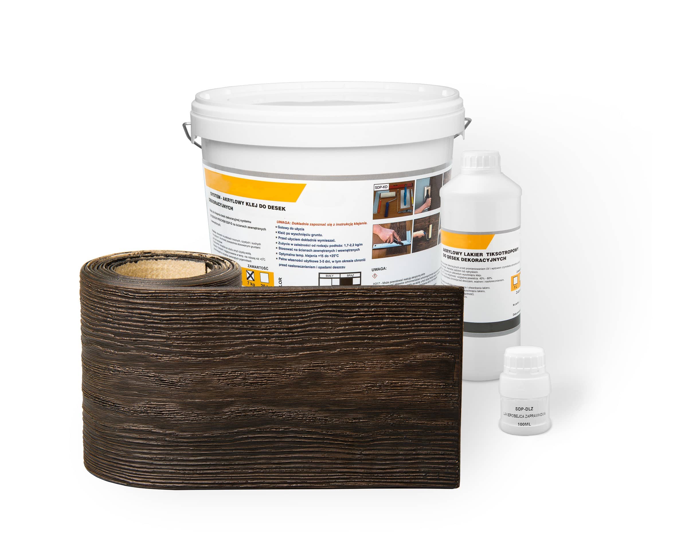 Kompletny zestaw na 1 m² zawiera wszystkie niezbędne elementy do montażu i wykończenia elewacji – bez potrzeby dokupowania dodatkowych materiałów: